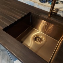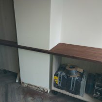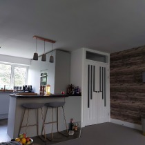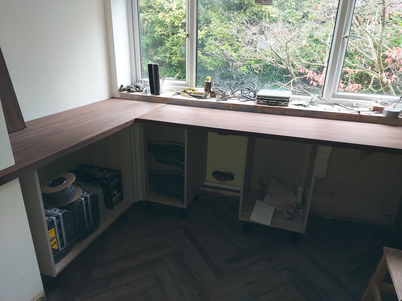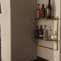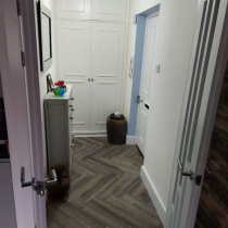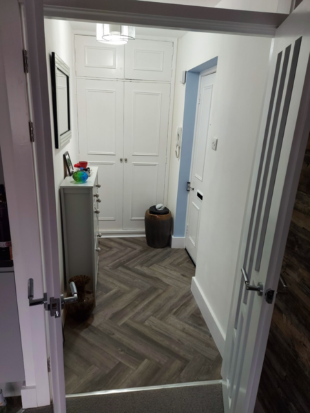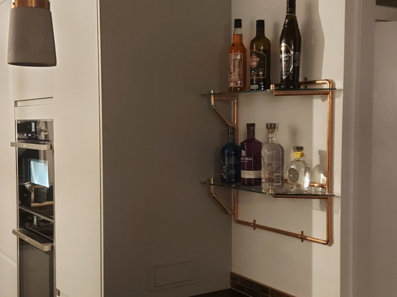This was our own place. We wanted a good size open plan kitchen. Hardwood Wenge worktops with a copper theme throughout. The wall tiles were metal!! If you watch the first video, in the hall there are three storage cupboards; each one 600mm wide. I removed the one nearest the kitchen door to give us another 600mm on the kitchen end to end. The lounge was massive, 6 metres x 5.5 metres, so we stole another 600mm from there as well. It may not seem a lot but the finish video shows the difference. The whole project took a while as I had to sort out the hall and lounge at the same time. New skirting, architrave and decorating etc. The kitchen was also completely rewired back to a new consumer unit.